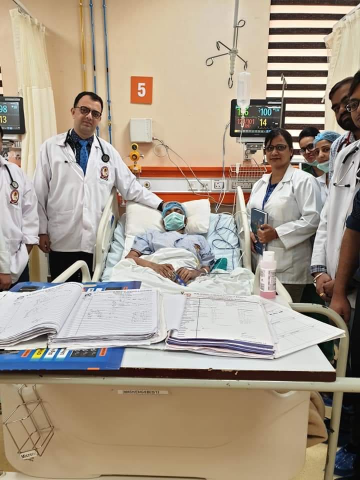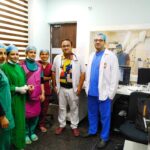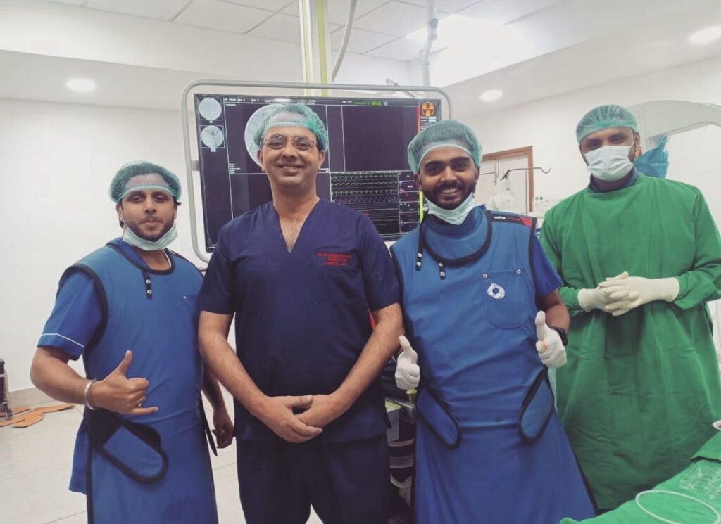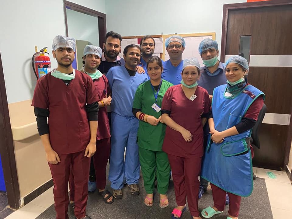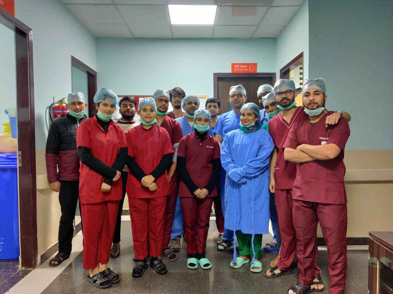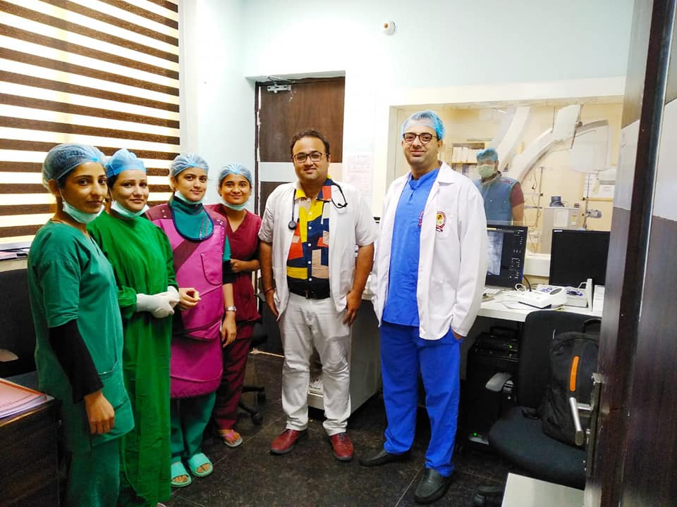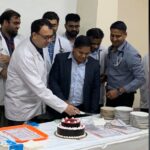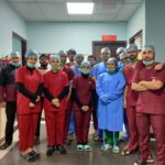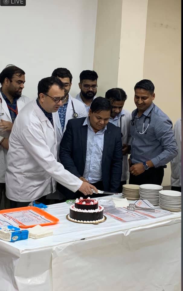 Sucess party with team and students for saving lives. Cardiology teaching at its peak